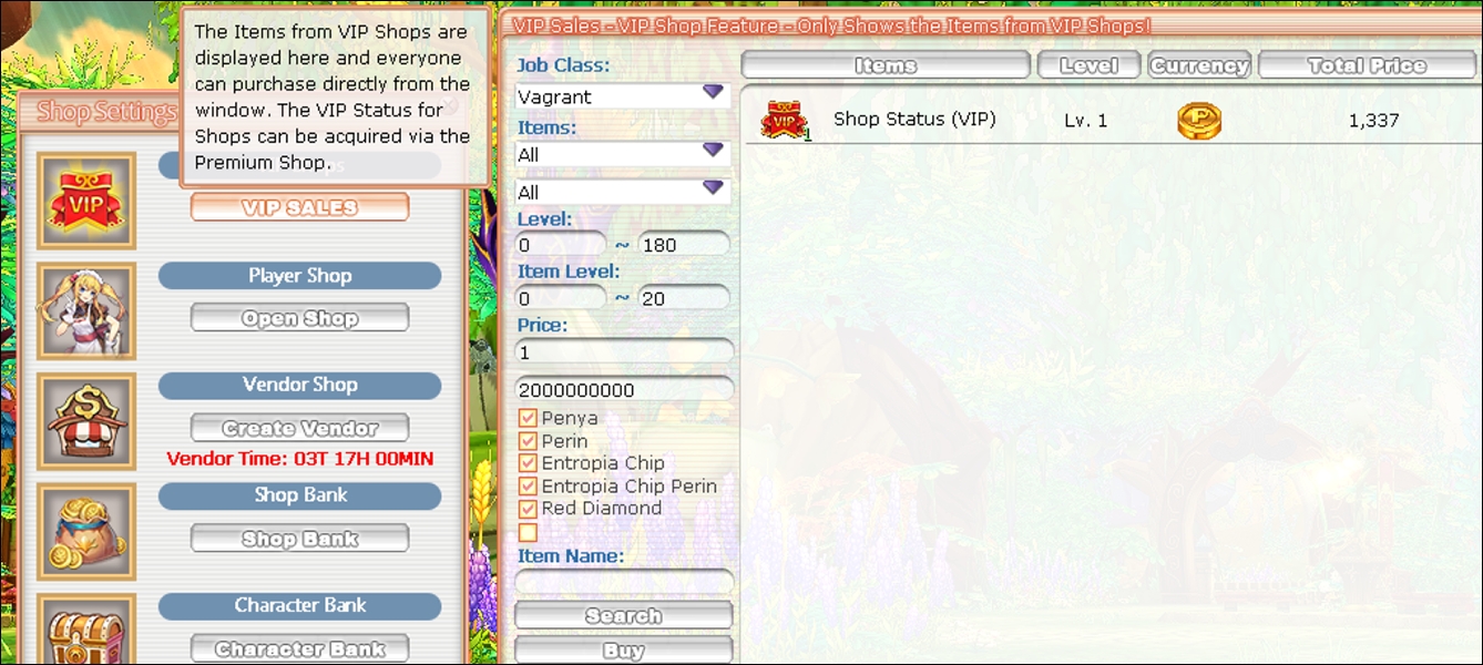 - Alle Spieler ohne Premium / VIP Buff können die Suche benutzen um bei VIP Shops einzukaufen -