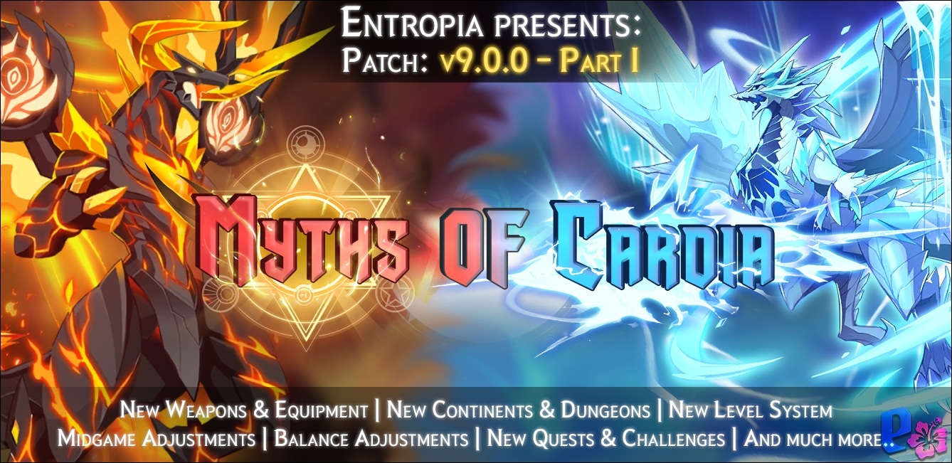 Mit dem Patch v9 "Myths of Cardia" bringen wir euch den ersten Teil der vielen neue Endgame Inhalte, Verbesserungen & Anpassungen auf unserem Server + Early/Midgame Anpassungen & Änderungen! Weitere Inhalte werden in der Zukunft noch Freigeschaltet! Weitere kleinere neue Inhalte im End/ Midgame sowie Anpassungen werden bis dahin noch auf Entropia folgen! Reist zur Insel Cardia, welche von einem schrecklichen Ereignis getroffen wurde! Dämonen und andere fürchterliche Kreaturen haben die Insel überrannt und die Körper der Lebewesen auf der Insel übernommen.