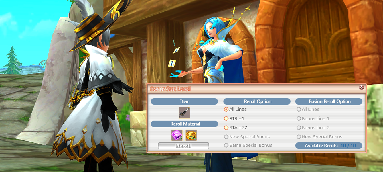 Die neuen Royal Waffen & Set Parts können mit bis zu drei Bonuswerten Droppen. Zwei Normale und einen Speziellen Bonus, welcher über höhere Werte verfügt. Alle Neuen Bonuswerte im neuen System sind an ihre Jobklassen angepasst. Sprich ein Slayer kann z.b. keine INT Bonuswerte auf seinem Equipment erhalten, wodurch es einfacher fällt höhere Bonuswerte auf den ersten Zwei Slots zu erhalten. Der Spezielle Bonus ist selten und soll es auch bleiben. In Cardia könnt ihr die Bonuswerte von Royalen Items neu auswürfeln, dies hat jedoch seinen Preis. Es werden unterschiedliche Materiallien aus den Dungeons oder Reroll Truhen vom NPC mit etwas Währung verlangt. Pro. Item hat man 10 Reroll versuche, welche jedoch mit einer Scroll wieder aufgefüllt werden können. Den Speziellen Bonus könnt ihr nur neu Rollen, wenn ihr auch über einen Speziellen Bonus auf dem Item verfügt. Den Speziellen Bonus könnt ihr Droppen oder über die "Alle Linien Rollen"-Funktion erhalten. Das Reroll System ist darauf ausgelegt wirklich den letzten Rest von den Royal Items rauszuholen und ist nicht dafür gedacht, dass es schnell gehen soll. Es wird wert darauf gelegt, dass man die Items und Bonuswerte aus den Dungeons oder durch das Herstellen von Royalen Items erhält und nicht durch das Rerollen alleine, deswegen ist der Preis vom Rerollen sehr Teuer angesetzt. Nicht vergessen, dass jede Jobklasse immer nützliche Werte erhält, wäre das Rerollen günstiger, dann würde es keinen sinn machen die Items aus den Dungeons zu erhalten, was der eigentliche Plan von diesem Spielinhalt ist.